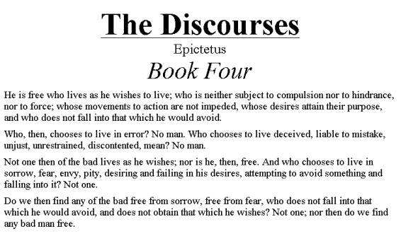 type="text/css" href="ch08_02.css"?> <document> <title>The Discourses</title> <philosopher>Epictetus</philosopher> <book>Book Four</book> <paragraph> He is free who lives