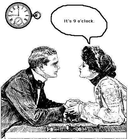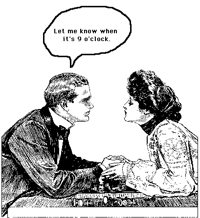 The man then carries out the task required at 9 o'clock, perhaps putting the chess set away and leaving, perhaps proposing marriage.