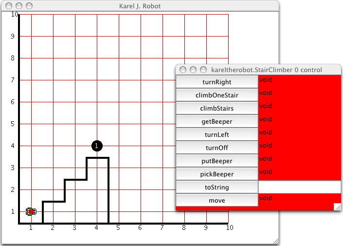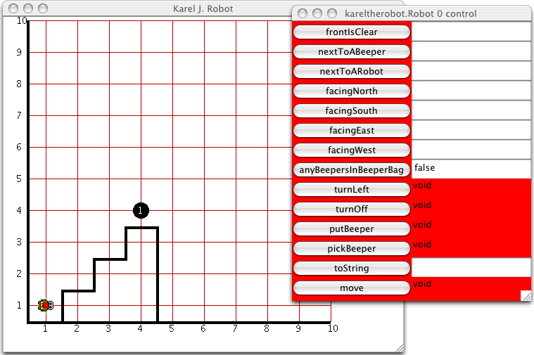 java -cp .;KarelJRobot.jar kareltherobot.MyMain kareltherobot.StairClimber 1 1 East 0 stairworld.kwld
