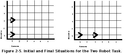 We are not restricted to using only a single robot to perform a task. We can have as many as we like. We shall see in later chapters that robots can communicate in sophisticated ways. For now, here is a simple task for two robots.