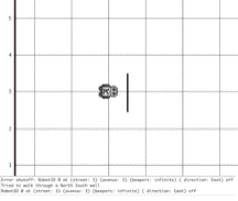 In contrast, Figure 2-2 shows an incorrect attempt to move. When this robot tries to execute a move instruction in this situation, it sees a wall section. Relying on its self-preservation instinct, it performs an error shutoff.