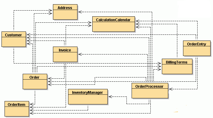 One of our public methods is used as a factory method to return new Order objects from a description of its requirements. The input to the method newOrder is a set of parameters describing the customer (the customer number), a code for the billing terms, an ArrayList of Strings describing the items to be ordered and three Calendar objects. We look up the customer in a customer database (in the Customer class) and return a reference to that existing customer.