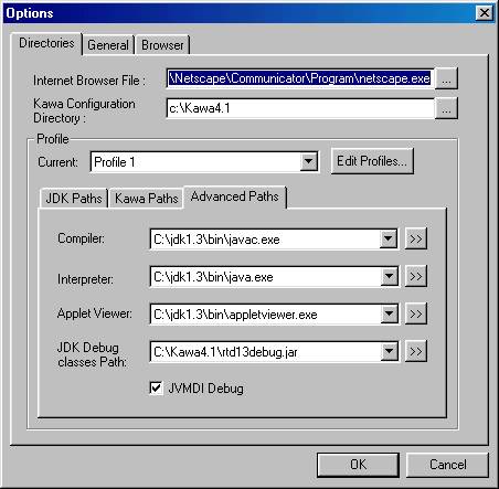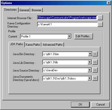 In Kawa under CustomizeOptions, set JDK, Kawa, & Advanced Paths as below. This assumes that you have installed the JDK on drive C in directory jdk1.3. Adjust otherwise.