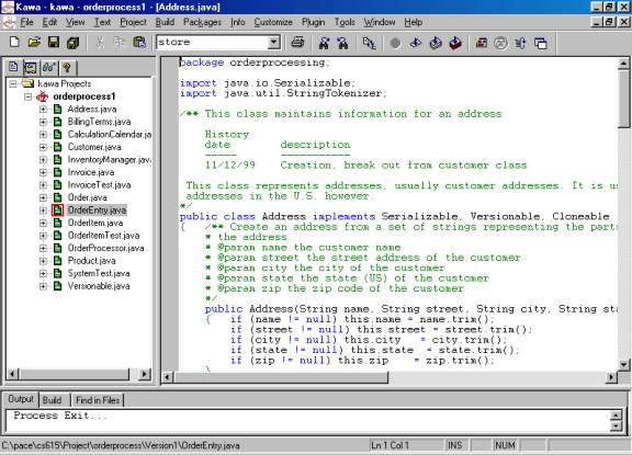 In Kawa, right click on OrderEntry.java and click on Main Class which puts a red box around that module indicating that it contains the main class to run. From the toolbar, click on Rebuild All and everything should compile without errors.