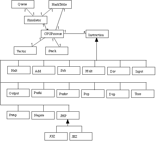 Here is a library of sources for this project. (The handouts can be excerpted from these. The current versions show solutions to some of the possible exercises.) The main three files are CPUProcess, Program, and Simulator. These should be first given in hard copy only so that students will really read them. The rest are part of a basic Container library rather more sophisticated than the Java 1.1 util classes. These can be given in machine readable form. They could also be replaced by Java 2 Container class code. They are needed to get a Queue, and for randomization. Alternatively, if the students had previously built a queue, then most of these auxiliary classes could be dropped, and the students could use their own queue here (Tool Box pedagogical pattern).