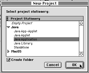 Java can build two kinds of executables: applications and applets. We are going to build an application here. You are familiar with applications. You run them from a command line or a windows icon. They can open and write files. They may or may not generate graphical views of themselves.