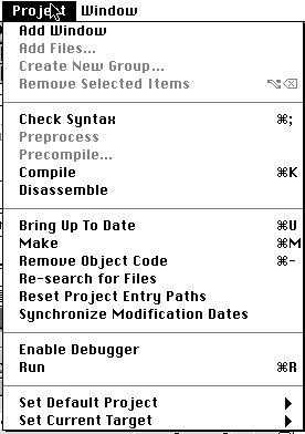 To build an application with Code Warrior, you must first create a project. Select New Project... from the application File menu.