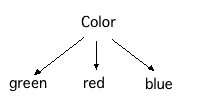 Max(.543, .086, .459) = .543, so color is best. Make the root node's attribute color and partition the examples for the resulting children nodes as shown: